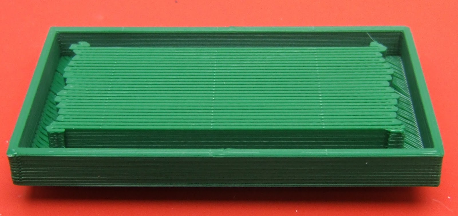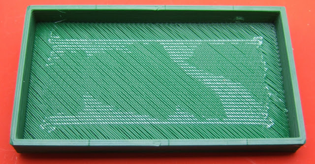 It was still quite tedious to remove, so I tried Adrian Bowyer's technique of using oil to reduce the bonding. I knew the roof of the lid started at 8mm, and my host software prints the height of the current layer, so I just waited until it had finished the support and painted it with machine oil using small paint brush, while dodging the head. It worked very well and made the support easy to remove.